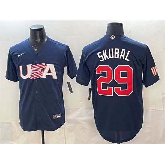 Men's USA Baseball #29 Cal Raleigh Navy World Baseball Classic Stitched Jersey