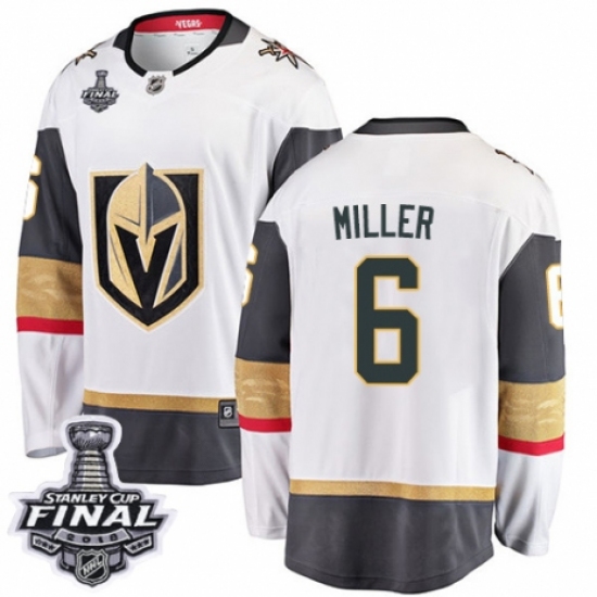 Men's Vegas Golden Knights #6 Colin Miller Authentic White Away Fanatics Branded Breakaway 2018 Stanley Cup Final NHL Jersey