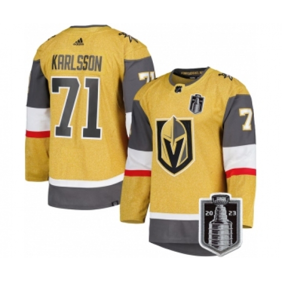 Men's Vegas Golden Knights #71 William Karlsson Gold 2023 Stanley Cup Final Stitched Jersey