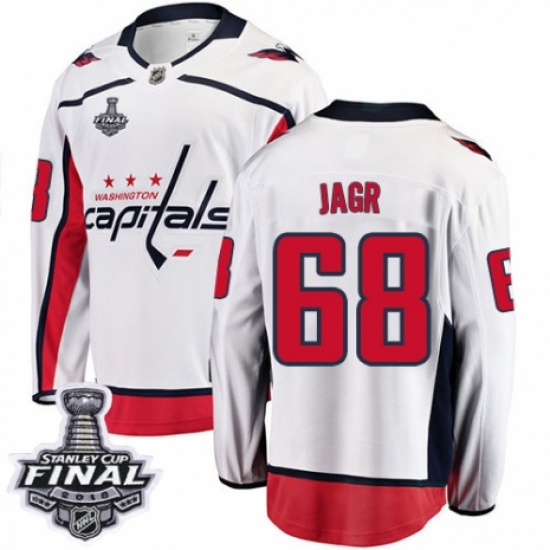 Men's Washington Capitals #68 Jaromir Jagr Fanatics Branded White Away Breakaway 2018 Stanley Cup Final NHL Jersey
