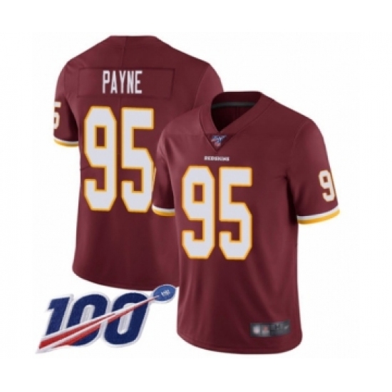 Men's Washington Redskins #95 Da'Ron Payne Burgundy Red Team Color Vapor Untouchable Limited Player 100th Season Football Jersey