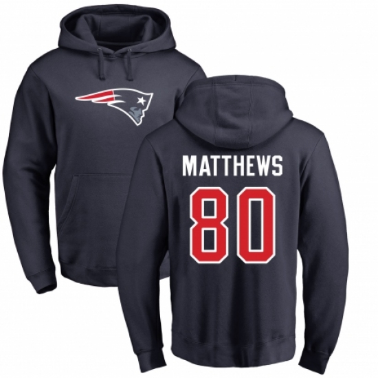 >NFL Nike New England Patriots #80 Jordan Matthews Navy Blue Name & Number Logo Pullover Hoodie