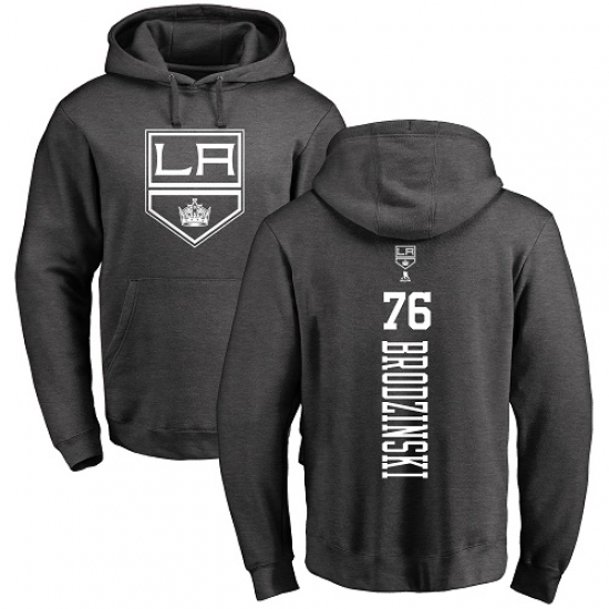 >NHL Adidas Los Angeles Kings #76 Jonny Brodzinski Charcoal One Color Backer Pullover Hoodie