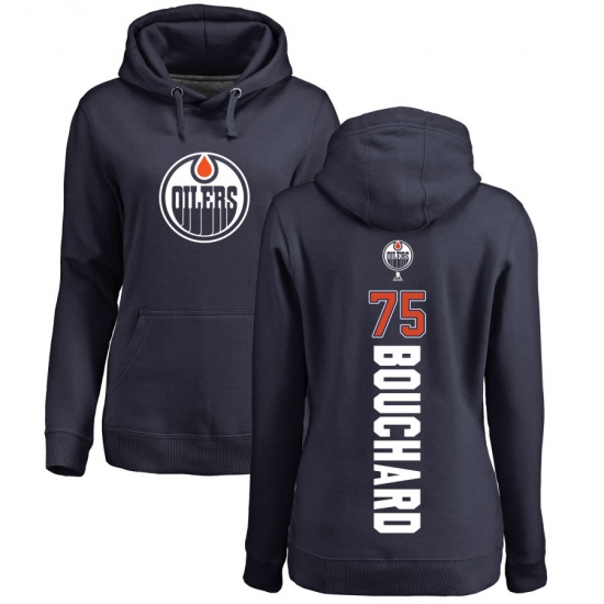 NHL Women's Adidas Edmonton Oilers #75 Evan Bouchard Navy Blue Backer Pullover Hoodie