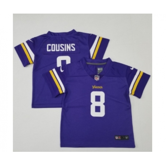 >Toddlers Minnesota Vikings #8 Kirk Cousins Purple 2020 Color Rush Stitched NFL Nike Limited Jersey