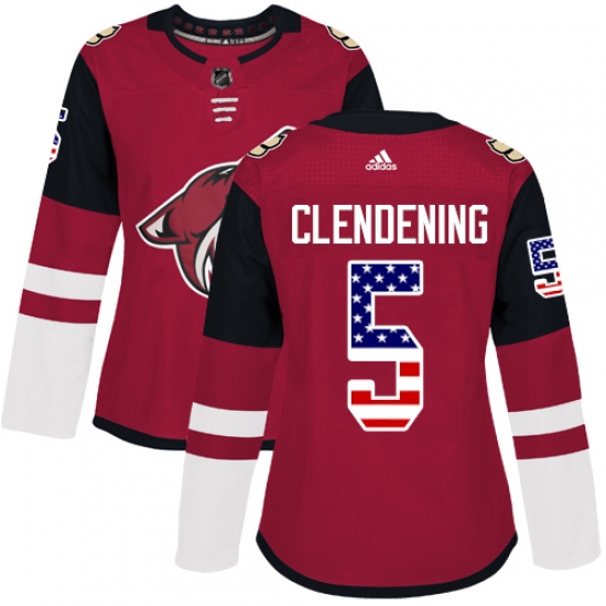 Women's Adidas Arizona Coyotes #5 Adam Clendening Authentic Red USA Flag Fashion NHL Jersey