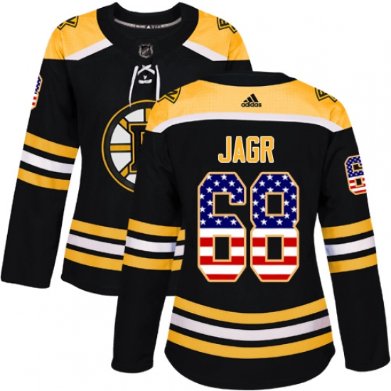 Women's Adidas Boston Bruins #68 Jaromir Jagr Authentic Black USA Flag Fashion NHL Jersey