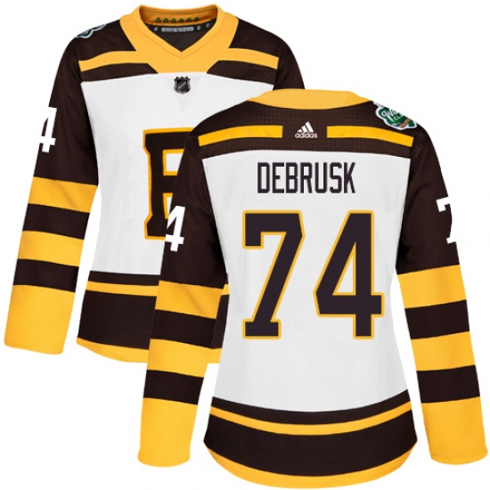 Women's Adidas Boston Bruins #74 Jake DeBrusk Authentic White 2019 Winter Classic NHL Jersey