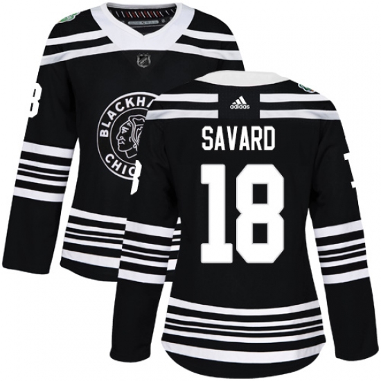 Women's Adidas Chicago Blackhawks #18 Denis Savard Authentic Black 2019 Winter Classic NHL Jersey