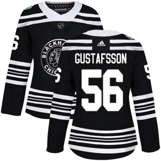 Women's Adidas Chicago Blackhawks #56 Erik Gustafsson Authentic Black 2019 Winter Classic NHL Jersey