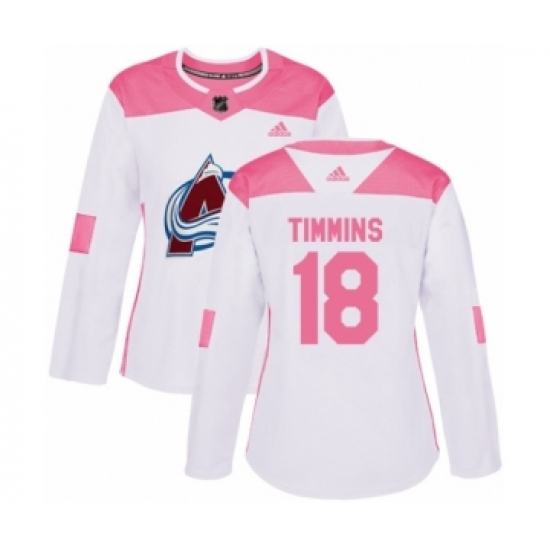 Women's Adidas Colorado Avalanche #18 Conor Timmins Authentic White Pink Fashion NHL Jersey