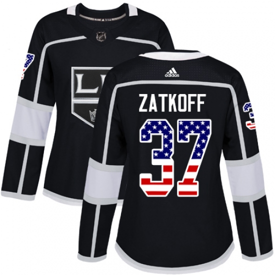 Home>NHL>Los Angeles Kings>Jeff Zatkoff>Women's Adidas Los Angeles Kings #37 Jeff Zatkoff Authentic Black USA Flag Fashion NHL Jersey