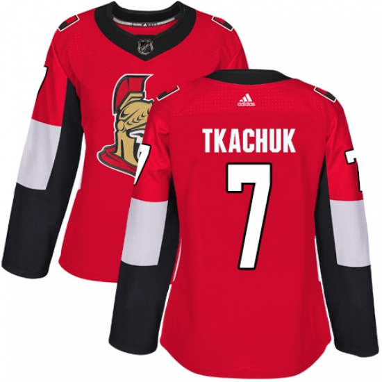 >Women's Adidas Ottawa Senators #7 Brady Tkachuk Premier Red Home NHL Jersey