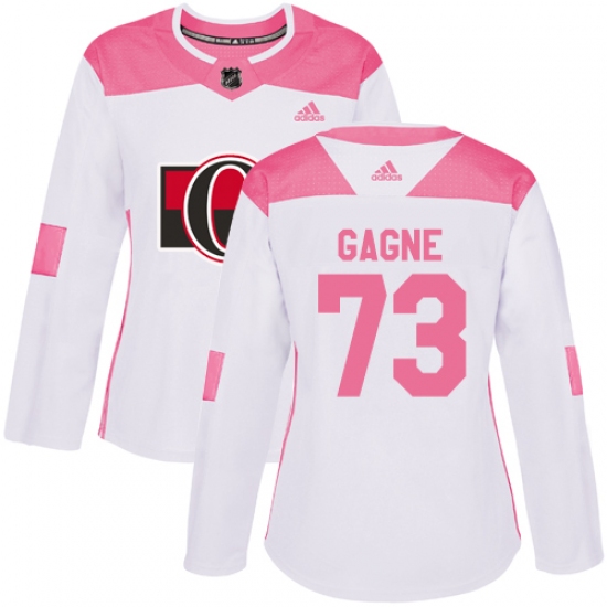 Women's Adidas Ottawa Senators #73 Gabriel Gagne Authentic White Pink Fashion NHL Jersey