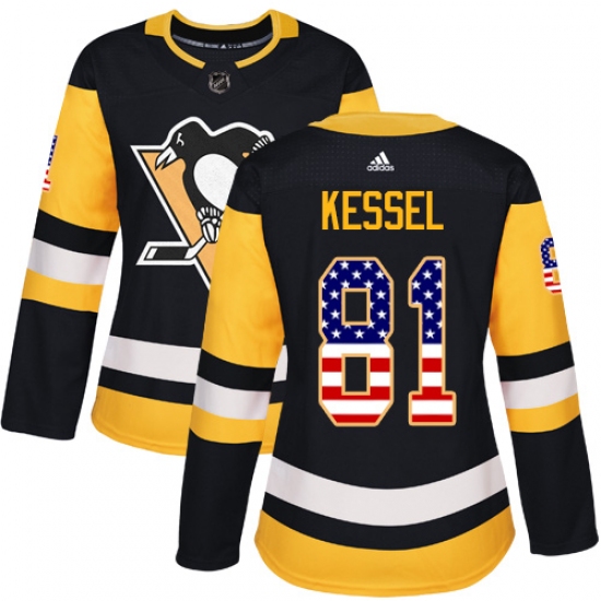 Home>NHL>Pittsburgh Penguins>Phil Kessel>Women's Adidas Pittsburgh Penguins #81 Phil Kessel Authentic Black USA Flag Fashion NHL Jersey