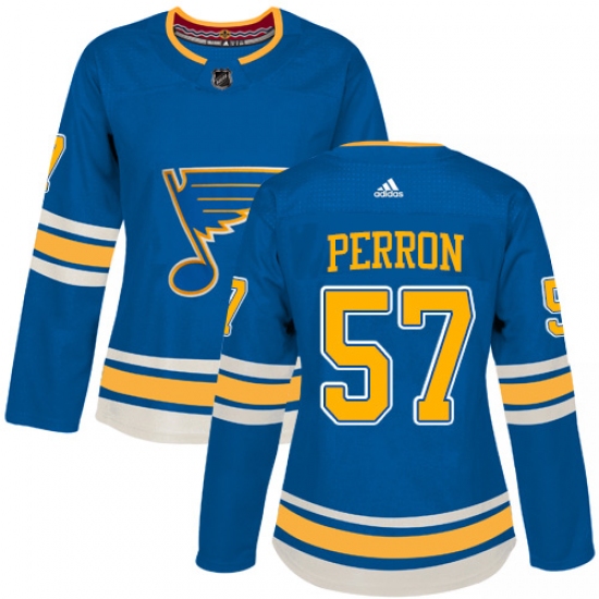 Women's Adidas St. Louis Blues #57 David Perron Authentic Navy Blue Alternate NHL Jersey
