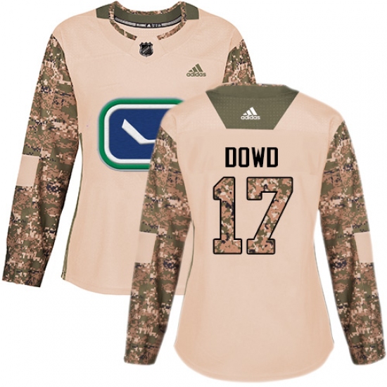 >Women's Adidas Vancouver Canucks #17 Nic Dowd Authentic Camo Veterans Day Practice NHL Jersey