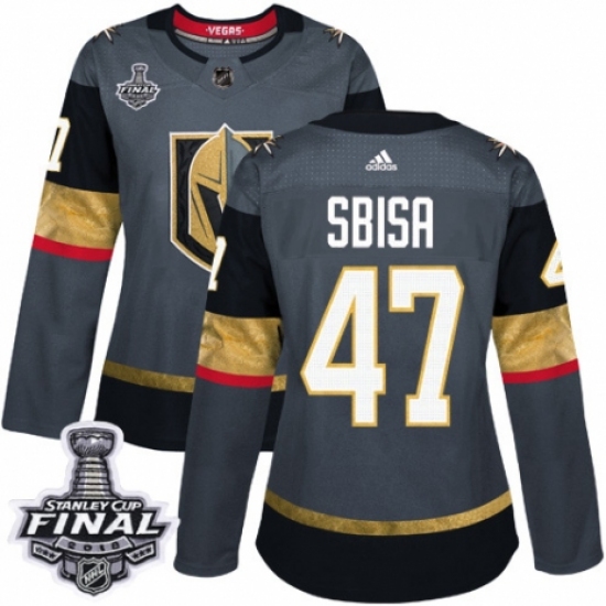 Women's Adidas Vegas Golden Knights #47 Luca Sbisa Authentic Gray Home 2018 Stanley Cup Final NHL Jersey