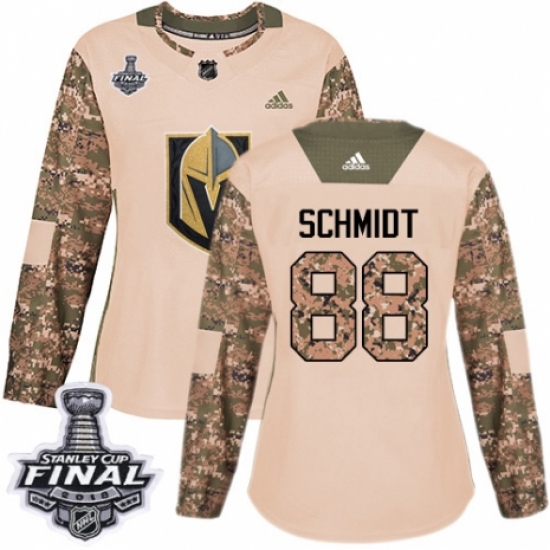 Women's Adidas Vegas Golden Knights #88 Nate Schmidt Authentic Camo Veterans Day Practice 2018 Stanley Cup Final NHL Jersey