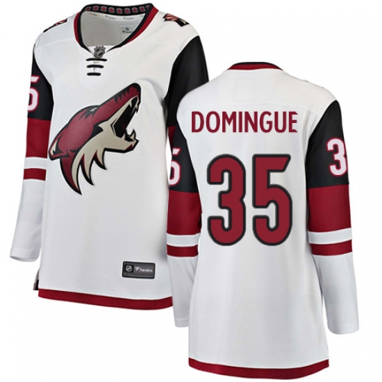 Home>NHL>Arizona Coyotes>Louis Domingue>Women's Arizona Coyotes #35 Louis Domingue Authentic White Away Fanatics Branded Breakaway NHL Jersey