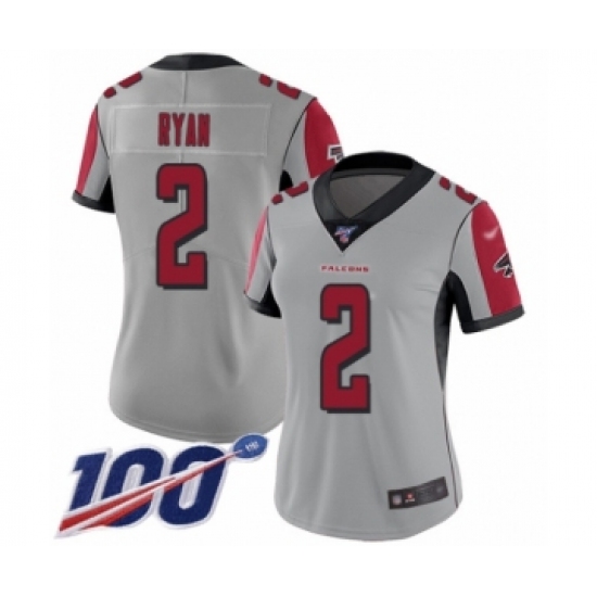 Women's Atlanta Falcons #2 Matt Ryan Limited Silver Inverted Legend 100th Season Football Jersey