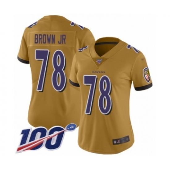 Women's Baltimore Ravens #78 Orlando Brown Jr. Limited Gold Inverted Legend 100th Season Football Jersey