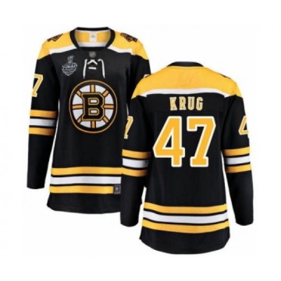 >Women's Boston Bruins #47 Torey Krug Authentic Black Home Fanatics Branded Breakaway 2019 Stanley Cup Final Bound Hockey Jersey