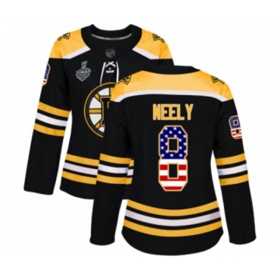 >Women's Boston Bruins #8 Cam Neely Authentic Black USA Flag Fashion 2019 Stanley Cup Final Bound Hockey Jersey