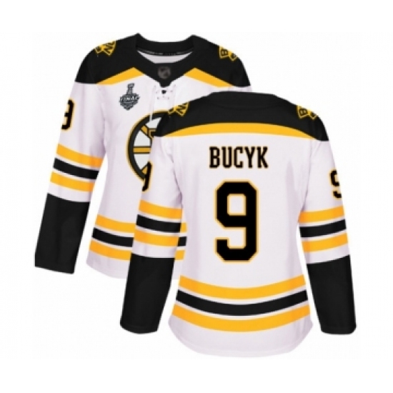 Women's Boston Bruins #9 Johnny Bucyk Authentic White Away 2019 Stanley Cup Final Bound Hockey Jersey