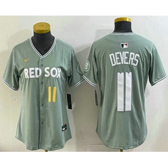 >Women's Boston Red Sox #11 Rafael Devers Light Green 2025 City Connect Player Name Limited Jersey