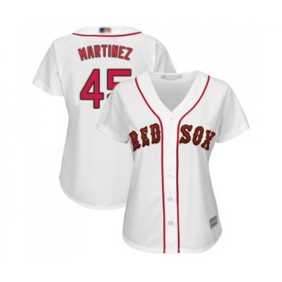 >Women's Boston Red Sox #45 Pedro Martinez Authentic White 2019 Gold Program Cool Base Baseball Jersey