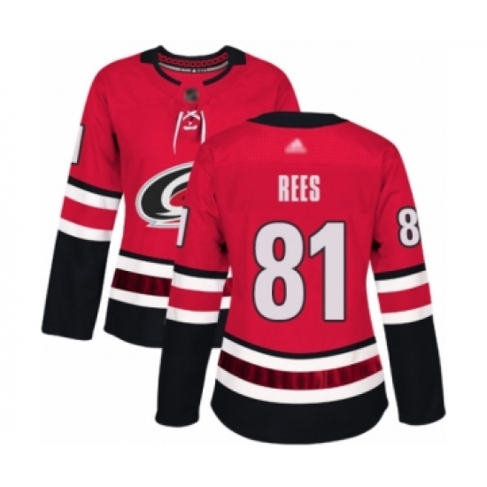 Women's Carolina Hurricanes #81 Jamieson Rees Authentic Red Home Hockey Jersey
