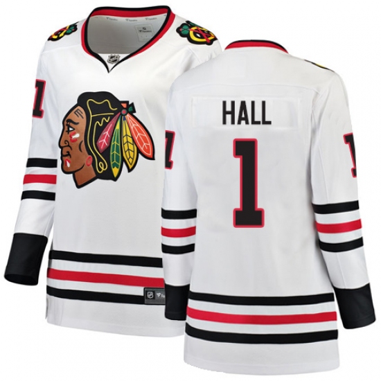 Women's Chicago Blackhawks #1 Glenn Hall Authentic White Away Fanatics Branded Breakaway NHL Jersey