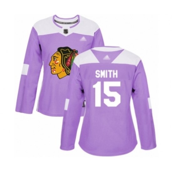 >Women's Chicago Blackhawks #15 Zack Smith Authentic Purple Fights Cancer Practice Hockey Jersey