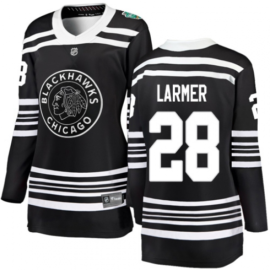 >Women's Chicago Blackhawks #28 Steve Larmer Black 2019 Winter Classic Fanatics Branded Breakaway NHL Jersey