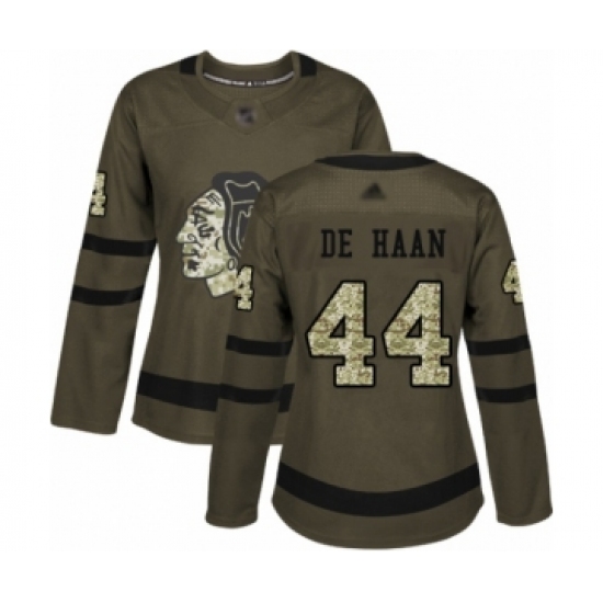 >Women's Chicago Blackhawks #44 Calvin De Haan Authentic Green Salute to Service Hockey Jersey