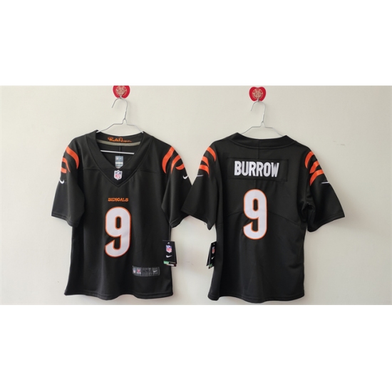 Women's Cincinnati Bengals #9 Joe Burrow Black Vapor Football Stitched Jersey(Run Small)