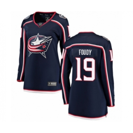 >Women's Columbus Blue Jackets #19 Liam Foudy Authentic Navy Blue Home Fanatics Branded Breakaway NHL Jersey