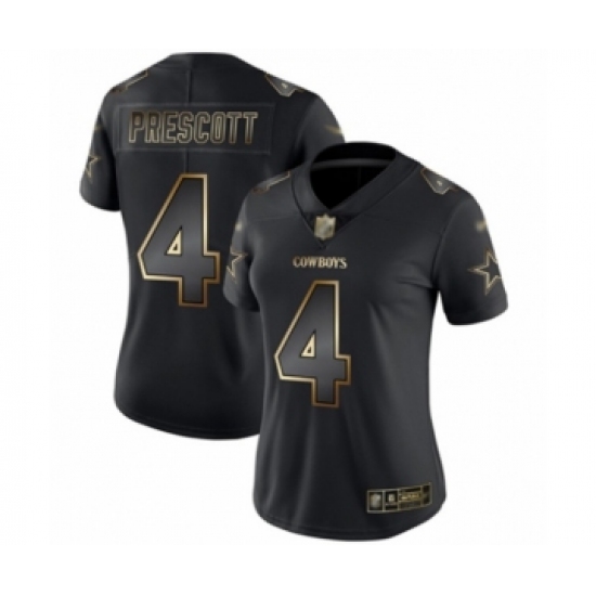 Women's Dallas Cowboys #4 Dak Prescott Black Gold Vapor Untouchable Limited Football Jersey