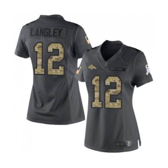 Women's Denver Broncos #12 Brendan Langley Limited Black 2016 Salute to Service Football Jersey