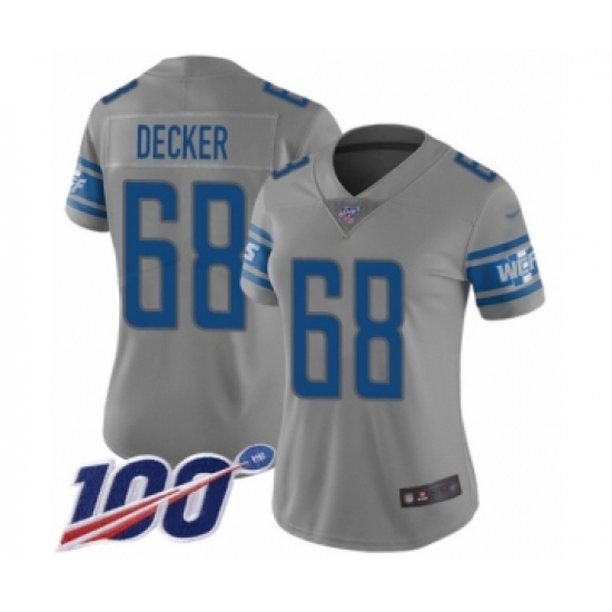 >Women's Detroit Lions #68 Taylor Decker Limited Gray Inverted Legend 100th Season Football Jersey