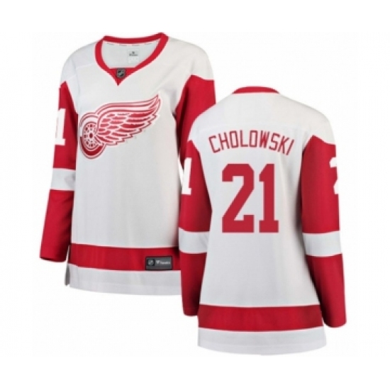 >Women's Detroit Red Wings #21 Dennis Cholowski Authentic White Away Fanatics Branded Breakaway NHL Jersey