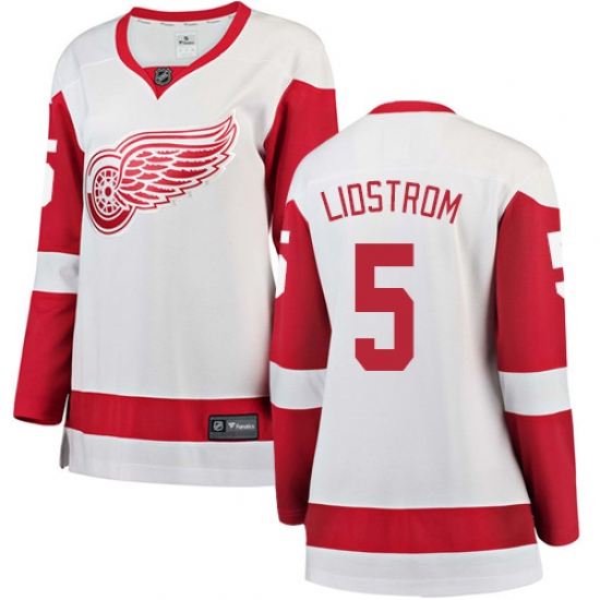 Women's Detroit Red Wings #5 Nicklas Lidstrom Authentic White Away Fanatics Branded Breakaway NHL Jersey