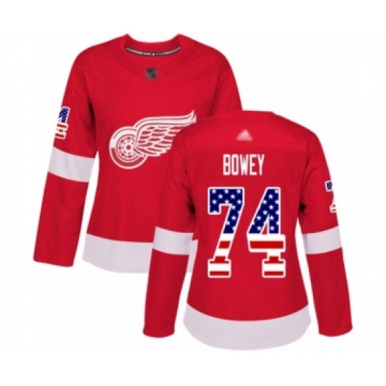 Women's Detroit Red Wings #74 Madison Bowey Authentic Red USA Flag Fashion Hockey Jersey