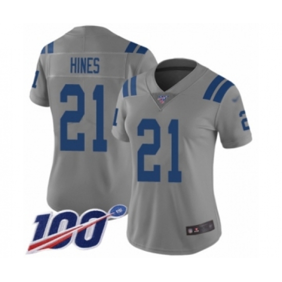 >Women's Indianapolis Colts #21 Nyheim Hines Limited Gray Inverted Legend 100th Season Football Jersey