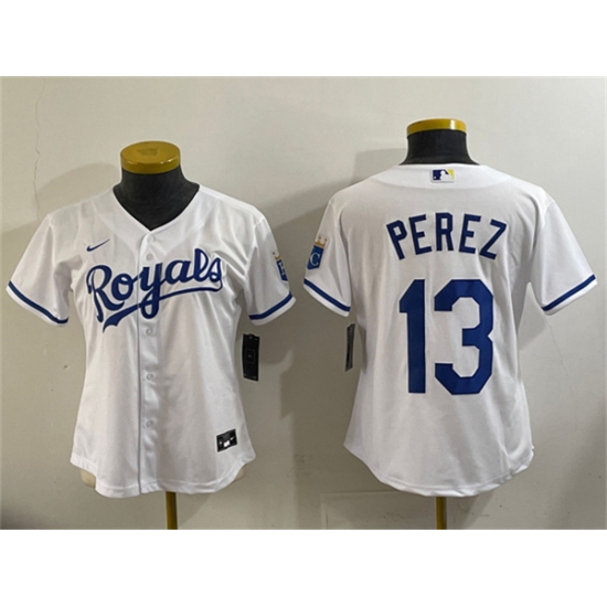 Women's Kansas City Royals #13 Salvador Perez White Cool Base Stitched Jersey(Run Small)