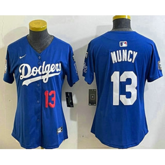 >Women's Los Angeles Dodgers #13 Max Muncy Number Blue 2024 World Series With Fernando 34 Fashion Limited Stitched Jerseys