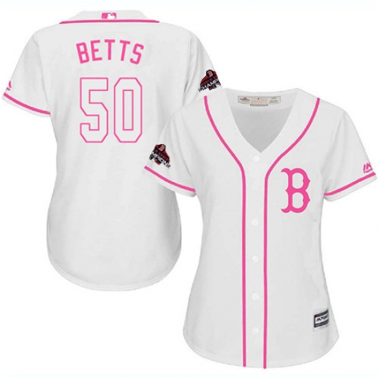 Women's Majestic Boston Red Sox #50 Mookie Betts Authentic White Fashion 2018 World Series Champions MLB Jersey
