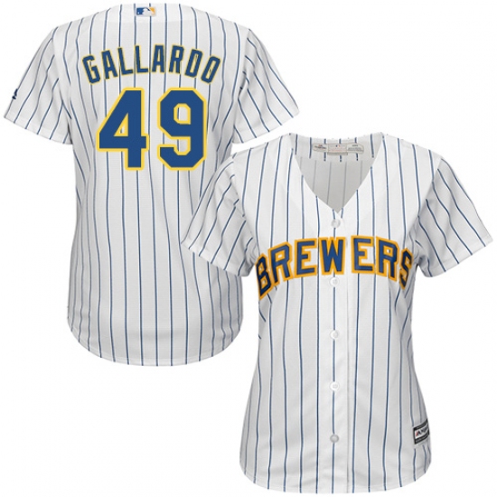 Home>MLB>Milwaukee Brewers>Yovani Gallardo>Women's Majestic Milwaukee Brewers #49 Yovani Gallardo Authentic White Alternate Cool Base MLB Jersey