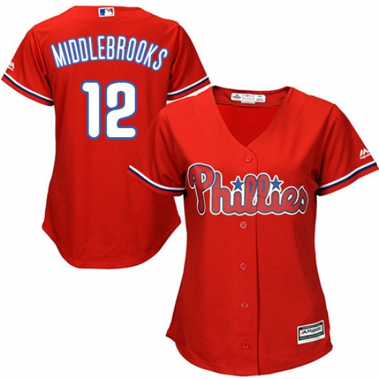 Home>MLB>Philadelphia Phillies>Will Middlebrooks>Women's Majestic Philadelphia Phillies #12 Will Middlebrooks Replica Red Alternate Cool Base MLB Jersey